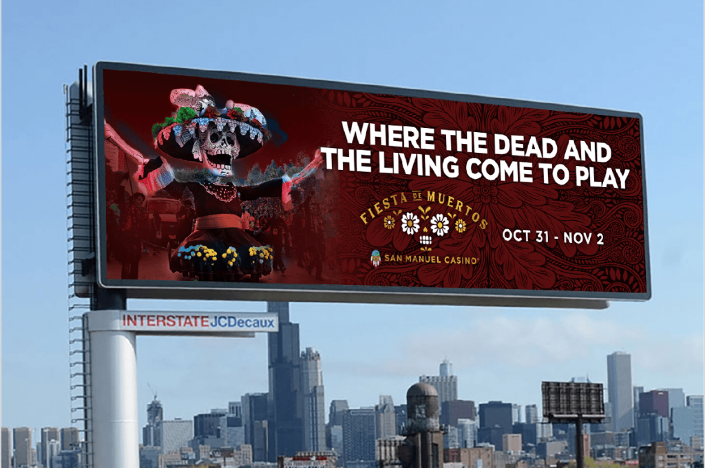 Now this one was a party. San Manuel Casino needed a theme for Día de Muertos, and we presented them with a full-blown carnival of color, sound, and drama. We pitched a bold idea, then lit it up with a billboard campaign you could see from the afterlife. The result? A dazzling invitation to the largest Day of the Dead celebration in the U.S., where guests weren’t just welcomed, they were summoned to something unforgettable. You know, like the afterlife.